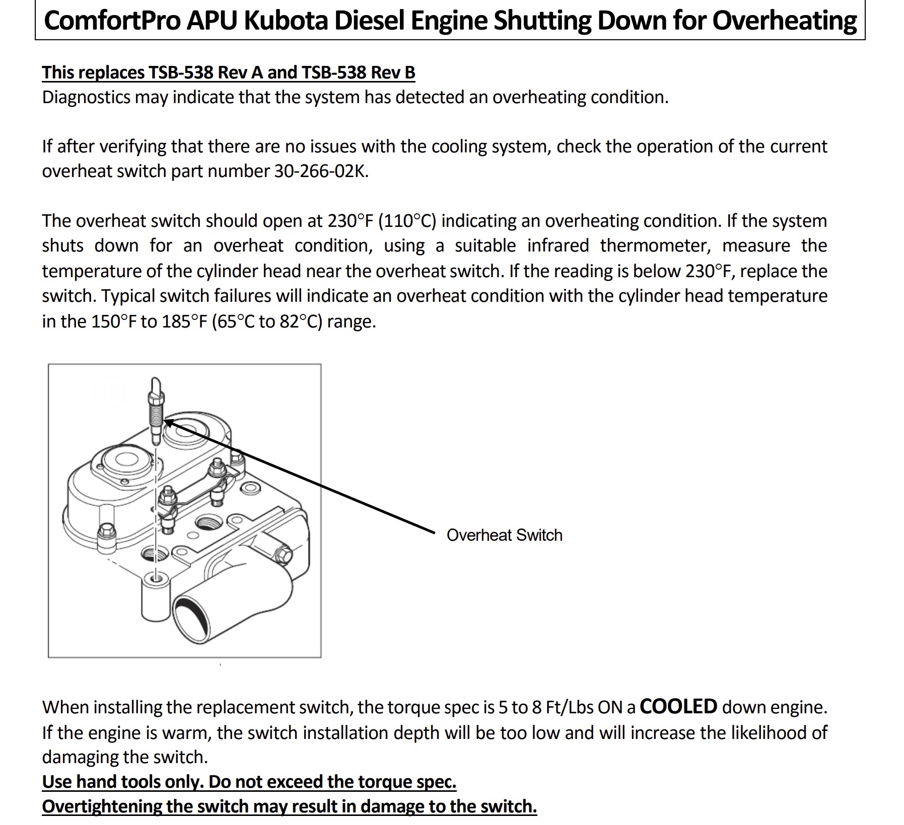 OEM APU Coolant Overheat Temperature Sensor 1/8NPT